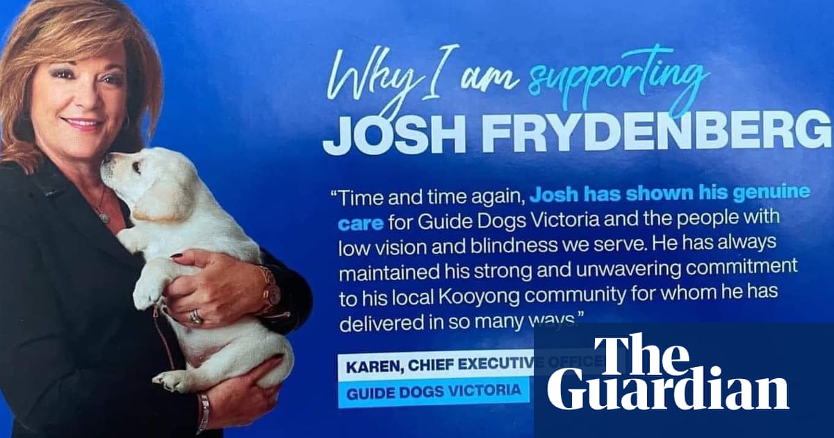 Guide Dogs Victoria says its launched an internal investigation after its chief executive officer appeared in election campaign material endorsing Treasurer. The Guide Dogs Victoria. As soon as it became aware of the flyer the organisations board asked Frydenberg to stop circulating it aware the charities commissioner had warned against endorsing political.
